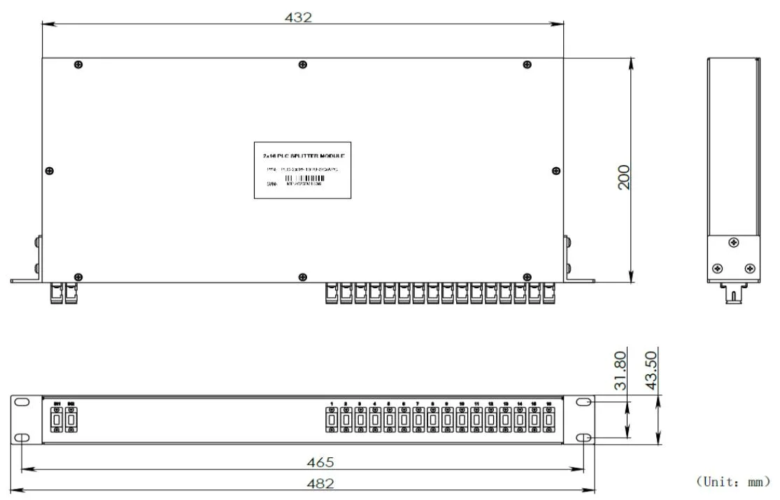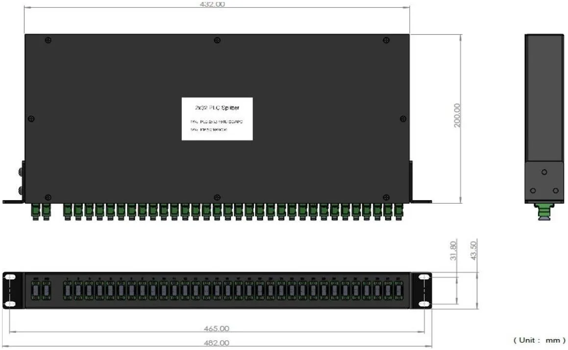 1*2 2*16 2*32 PLC Splitter (1RU 19 "Тип на монтажа на решетката)