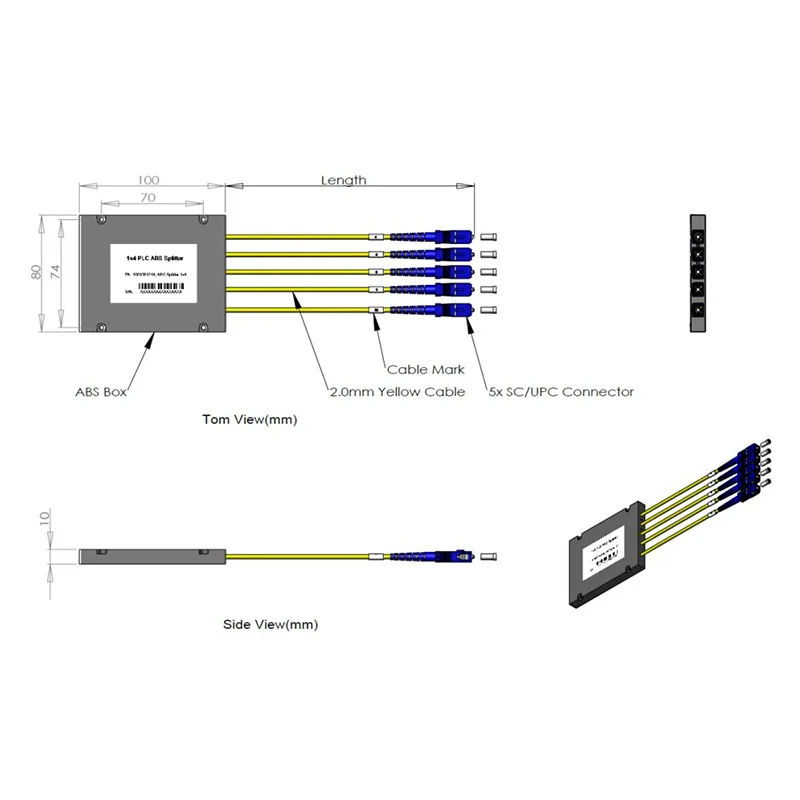 1x4 Планарна светлосна пакет за сплитер на колото на лајт-лајв, 100x80x10mm, φ2.0 жолт PVC кабел должина 2.0 +0,1/-0m, 5pcs SC/UPC конектор.Спецификации за перформанси:ПараметриСимболСпецификацииЕдиницаБрој на каналЧ.1 × 4Операција на бранова должина1260 ~ 1650nmТест бранова должина1310/1550nmС......