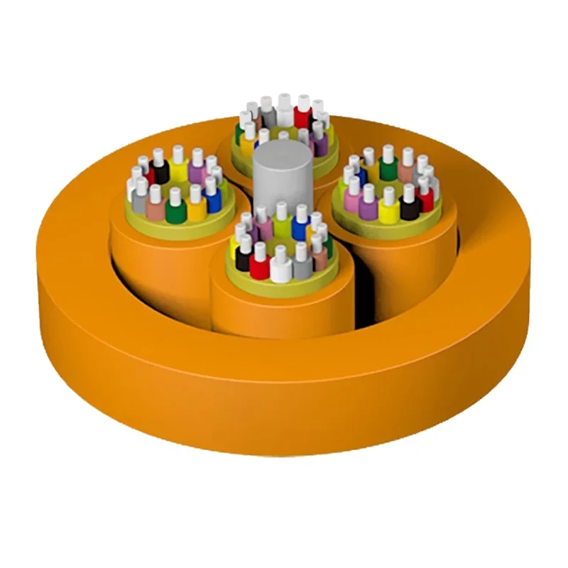 Мулти-намена за дистрибуција на оптички кабел за дистрибуција на влакна (≥24F) користи мулти-основни под-единици (φ900 μm тесни оптички влакна, елементи за засилување на арамид), неметално централно јадро за засилување, оптички кабелски под-единици се искривени во централното јадро за засилување за да формираат каблино јадро, и слој на поливинил, или ниско-сл. Нулта-халоген материјал (LSZH, низок чад, обвивка без халоген, пламен) обвивка се екструдира однадвор.